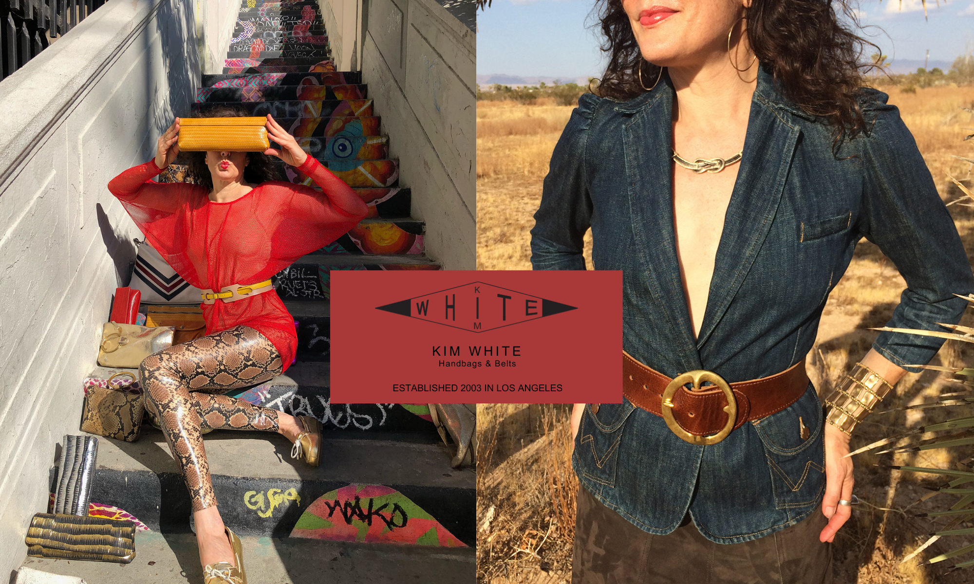 Kim's belts are made in the USA with unique buckles made exclusively for her line. All belts are made of leather and manufactured by skilled craftsman in Los Angeles. Each is made one by one.
